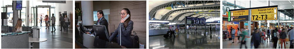 • Anwendbar auf den Übergang zwischen Innen- und Außenbereich, wie etwa an Toren/Eingängen von Flughäfen, Krankenhäusern, Restaurants und anderen öffentlichen Geschäftsräumen.